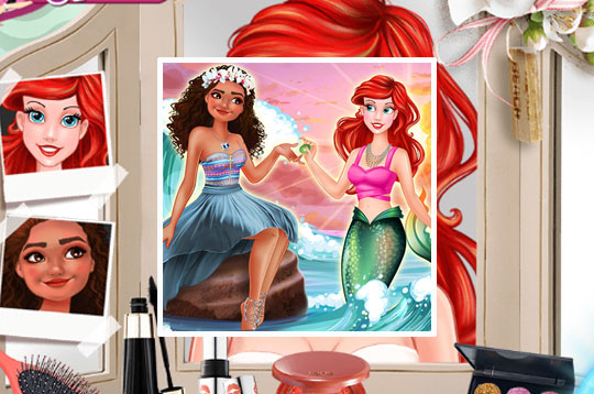 In Ocean Princesses Party Time Moana and Ariel are the most beautiful princesses in the ocean. They need to find the perfect match to go to a beach party tonight. Help your friends choose the best look and makeup to ruin the party! - Play Ocean Princesses Party Time Free and Enjoy!
